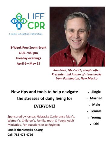 If you are a living, breathing human being you have relationships…If you are young you have relationships with siblings, parents, friends, classmates and teachers. If you are older you have relationships with children, spouses, friends and coworkers. Life CPR will give you tools to make these relationships the best they can be! Join us for a lighthearted and informative hour to help you improve the important relationships in your life Tuesday evenings from 6:00-7:00 pm April 6 to May 25 for Life CPR: 8 weeks to healthier relationships. To register or for questions email cbarker@ks-ne.org or call 785-478-4726.