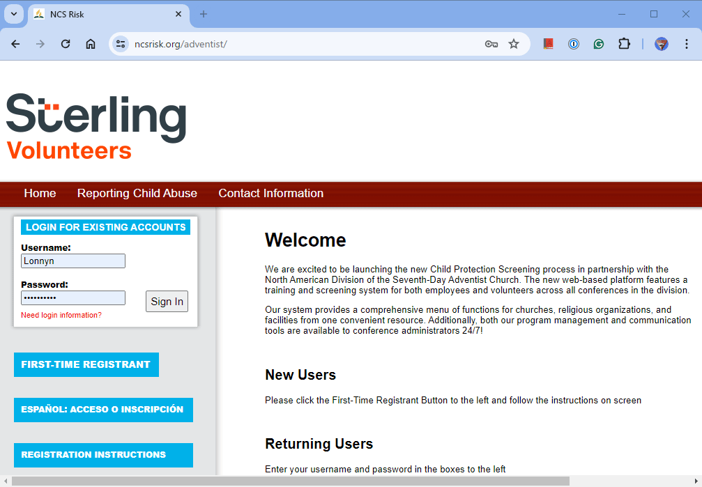 1. log in to Stirling using "ncsrisk.org/adventist."