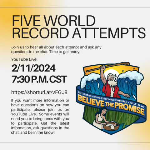 Any club can attend. These are not official questions. Thursday, Feb 8 at 7:15 pm-8:15 pmZoom Link: https://us02web.zoom.us/j/89682930702?pwd=bWtlWG01UnE1UjdSK1NUZlFENk9lZz09Meeting ID: 896 8293 0702 Passcode: 174076Instructions: All pathfinders in 1 room. Each team has 1 computer or tablet. Phones do not work well. They will log into NearPod with the club name, the NearPod code will be given at the start of the practice. Instructions will start at 7:18. Practice will start at 7:20.
