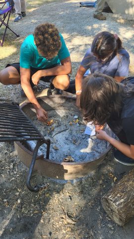 Our 5 clubs worked together on camping skills, building fires and activities where the pathfinders could get to know others from the other clubs. We played a version of 20 questions where the pathfinders has to figure out what plant, mineral or animal had been placed on their back.