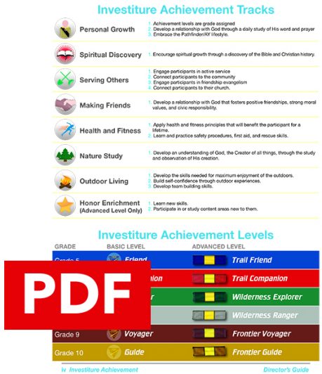 Investiture Achievement offers these resources for Pathfinder leaders. With digital copies of requirements and teaching material a Pathfinder leader's will be better-equipped than ever before.