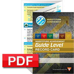 Guide Record JournalThe official Record Journal designed to creatively engage Pathfinders in the Investiture Achievement requirements.English: Purchase Journal Download (18.6mb)Spanish: Purchase Journal Download (20mb) |