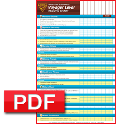 Voyager Requirement ChartThis chart will keep track of the achievements of multiple Pathfinders in completing their level requirements.English: Purchase Chart Download (589kb)Spanish: Purchase Chart Download (630kb) |