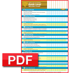 Guide Requirement ChartThis chart will keep track of the achievements of multiple Pathfinders in completing their level requirements.English: Purchase Chart Download (579kb)Spanish: Purchase Chart Download (613kb) |